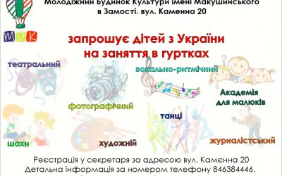 Щиро запрошуємо дітей з України на позашкільні безкоштовні заняття в Молодіжному Будинку Культури в Замості. Детальна інформація за номером телефону 846384446. Заява на: www.mdk.zamosc.pl UA...