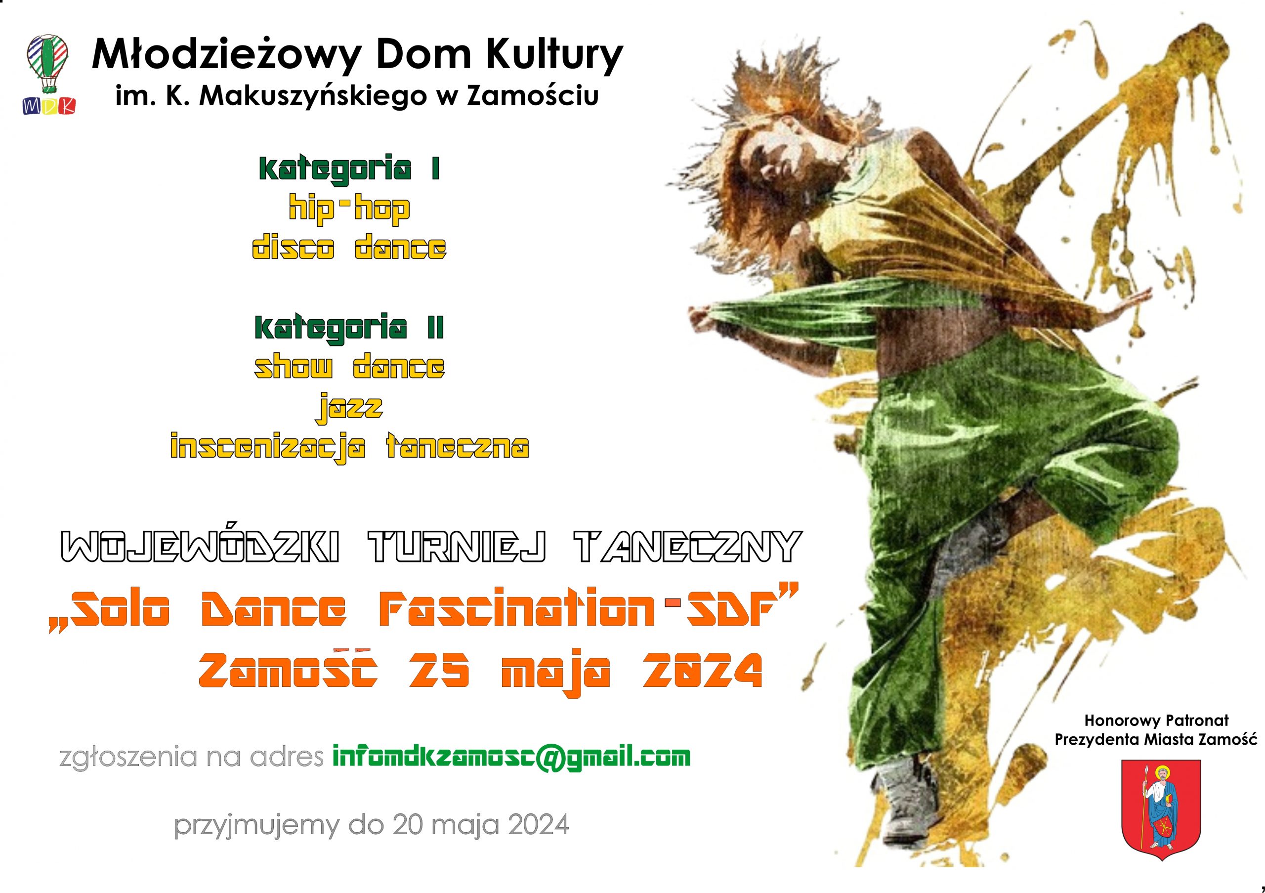 Młodzieżowy Dom Kultury im. Kornela Makuszyńskiego w Zamościu zaprasza uczniów szkół podstawowych i ponadpodstawowych oraz wychowanków placówek wychowania pozaszkolnego z województwa lubelskiego do udziału w turnieju tanecznym.