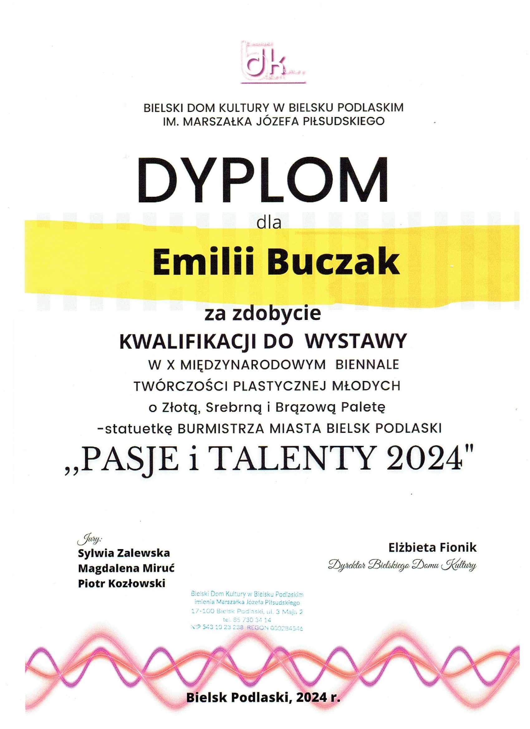 Emilia Buczak została wyróżniona kwalifikacją do wystawy pokonkursowej.
