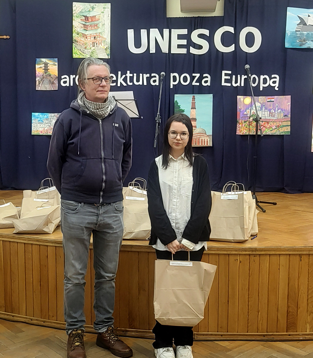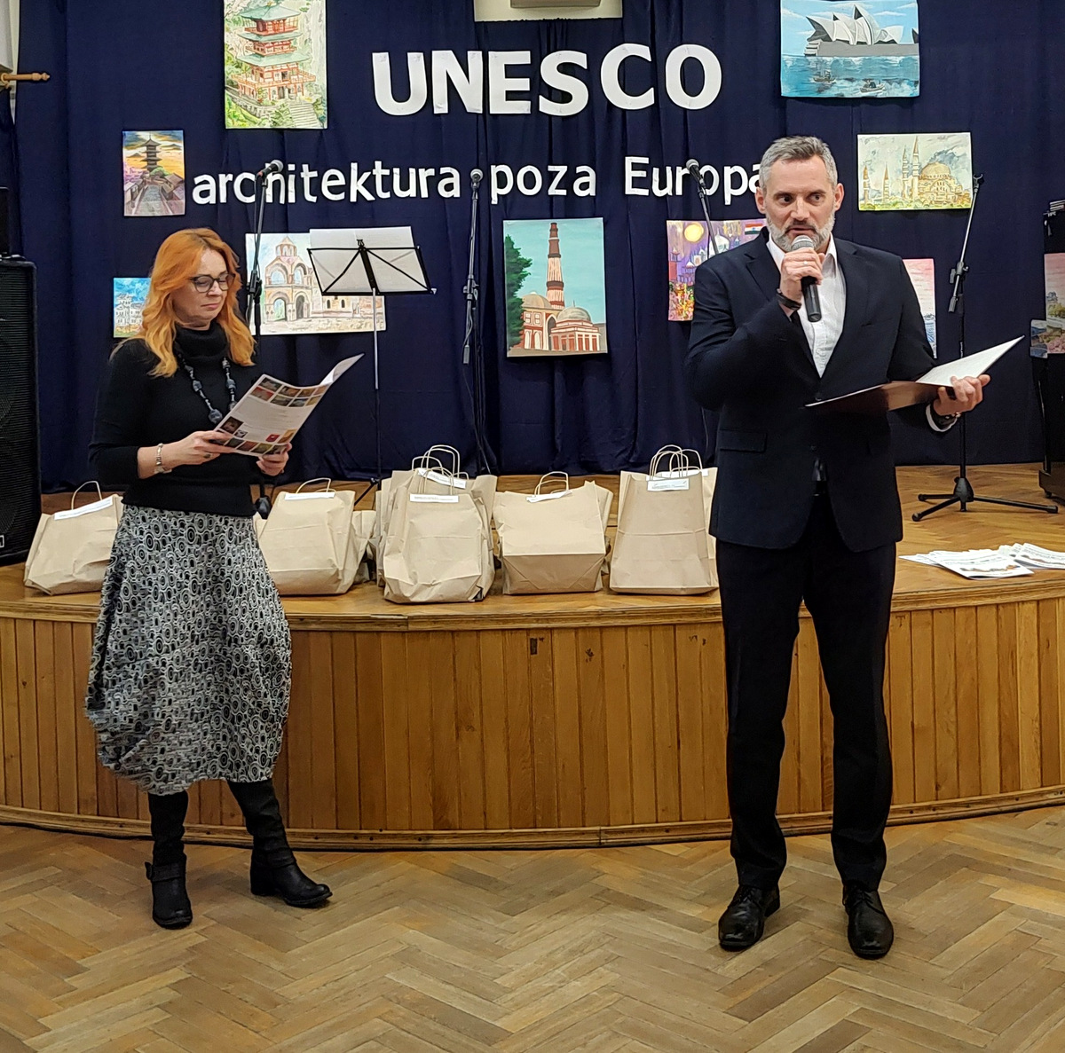 We wtorkowe przedpołudnie w Galerii Sztuki MDK “Na Kamiennej” odbyło się otwarcie wystawy oraz podsumowanie V Ogólnopolskiego Konkursu Plastycznego “Dziedzictwo UNESCO- zabytki architektoniczne poza Europą”, który Honorowym Patronatem objęli Prezydent Miasta Zamość – Rafał Zwolak i Lubelski Wojewódzki Konserwator Zabytków – Dariusz Kopciowski.