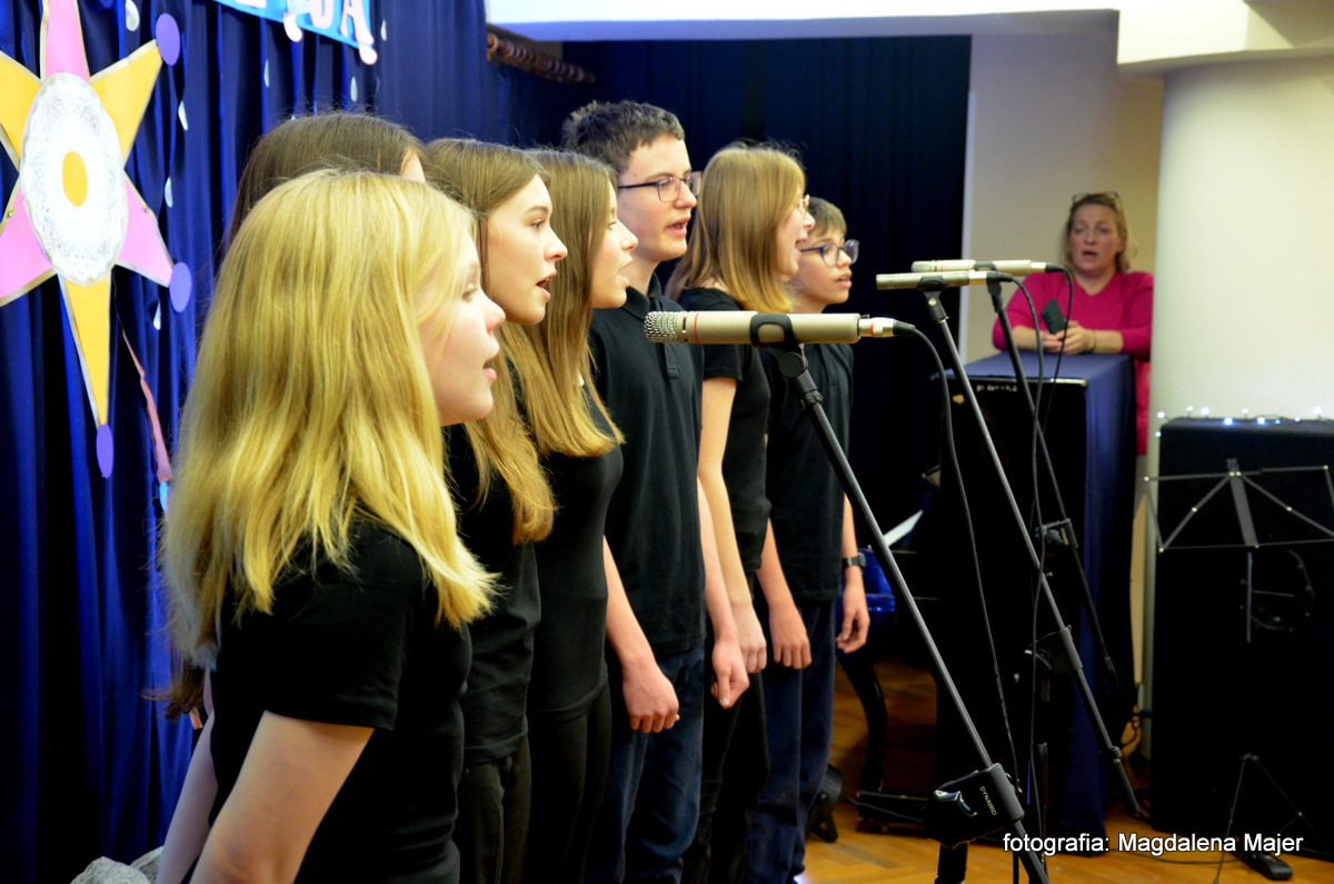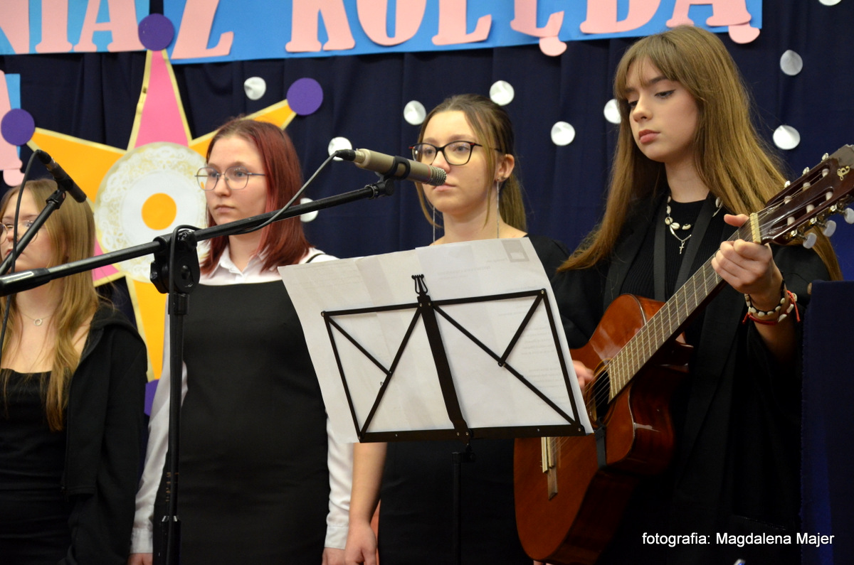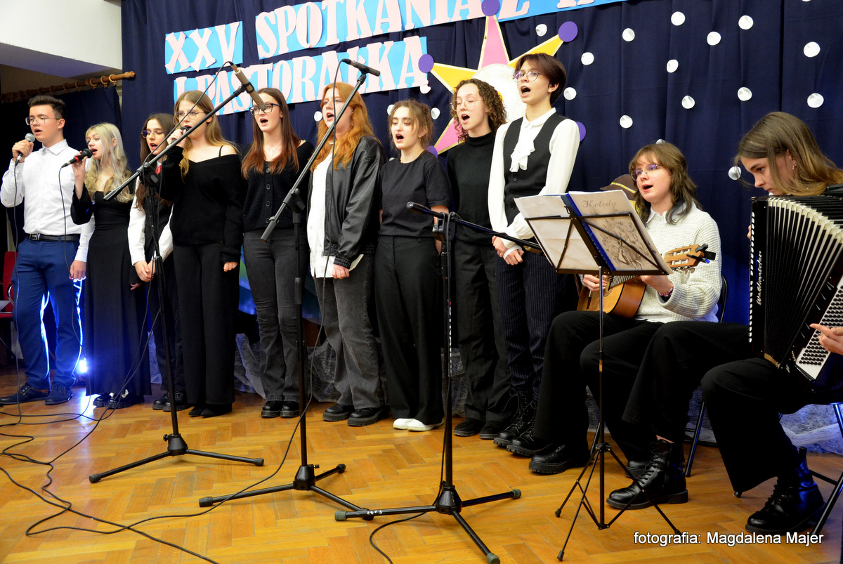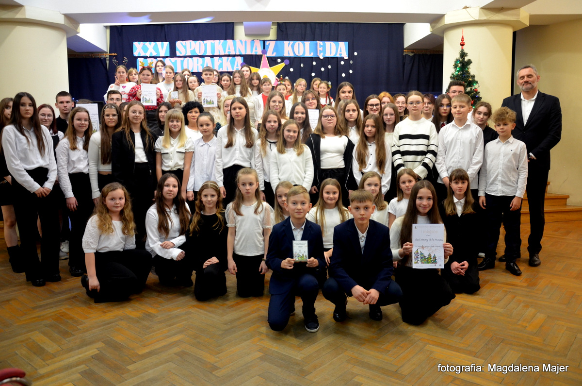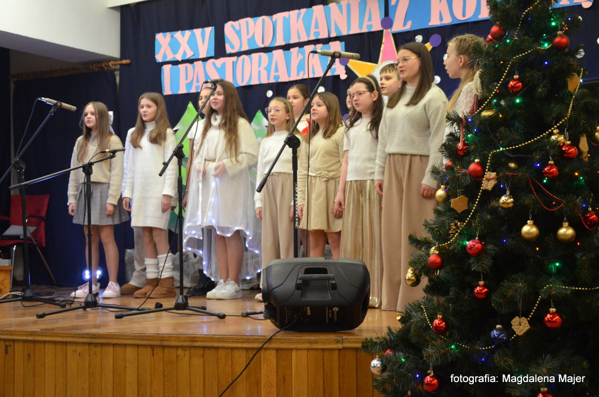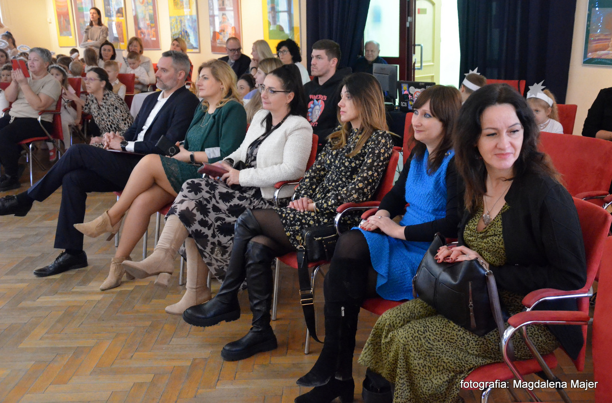 W dniu 21 stycznia 2025r. w Młodzieżowym Domu Kultury w Zamościu odbyły się XXV Spotkania z Kolędą i Pastorałką. Pośród zaproszonych gości, na widowni zasiadły: pani Ewa Miętus- inspektor Wydziału Oświaty UM Zamość, pani Jolanta Repeć – inspektor Wydziału Oświaty UM Zamość i pani Marta Grela- Przewodnicząca Rady Rodziców MDK.