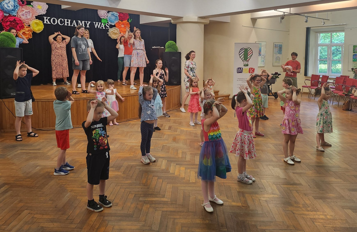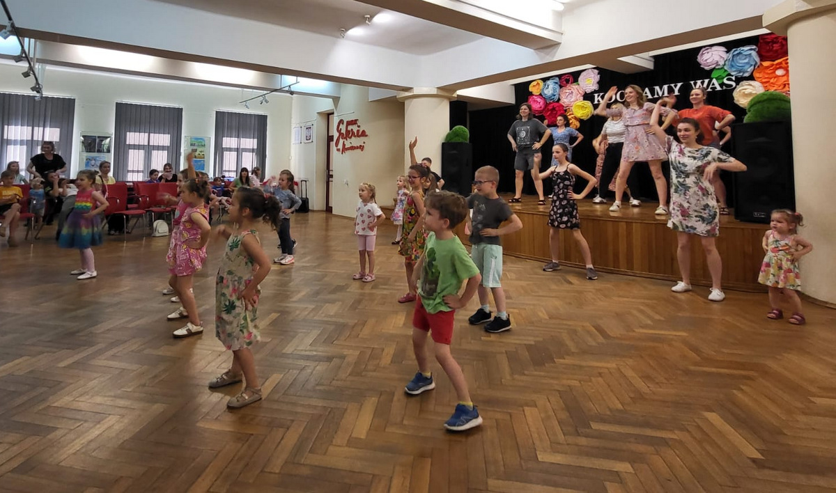 Dnia 4 czerwca 2025 roku w MDK odbyło się wyjątkowe wydarzenie z okazji ,,Dnia Matki”. Spotkanie to było uroczystym zwieńczeniem cyklicznych warsztatów pod hasłem ,,Mama i ja”, które trwały przez cały maj. W trakcie, mamy wspólnie ze swoimi dziećmi nie tylko uczyły się choreografii, ale przede wszystkim budowały więź, dzieliły się radością, doświadczeniem, integrowały w twórczej i serdecznej atmosferze. Finałowy pokaz był wzruszającym momentem podczas, którego uczestnicy zaprezentowali przygotowany układ taneczny, dając wyraz swej bliskości, zaangażowaniu i pracy włożonej w to wydarzenie. W każdy wspólnie spędzony moment. Nie zabrakło też uśmiechów, braw i zabawy, które na długo zostaną w pamięci. Serdeczne podziękowania kierujemy w ręce Rady Rodziców, która umożliwiła Nam to wydarzenie, wszystkich Mam za ich otwartość, zaangażowanie i energię, jaką wniosły do naszych zajęć. Dziękujemy również dzieciom, za ich entuzjazm, radość I niezwykłą kreatywność. To dzięki Wam warsztaty,, Mama I ja” stały się realne. Wielkie 5 i do zobaczenia w przyszłości!
