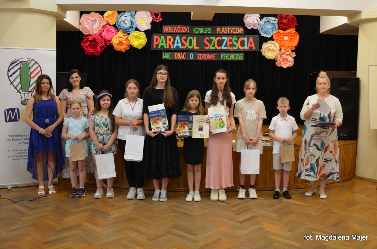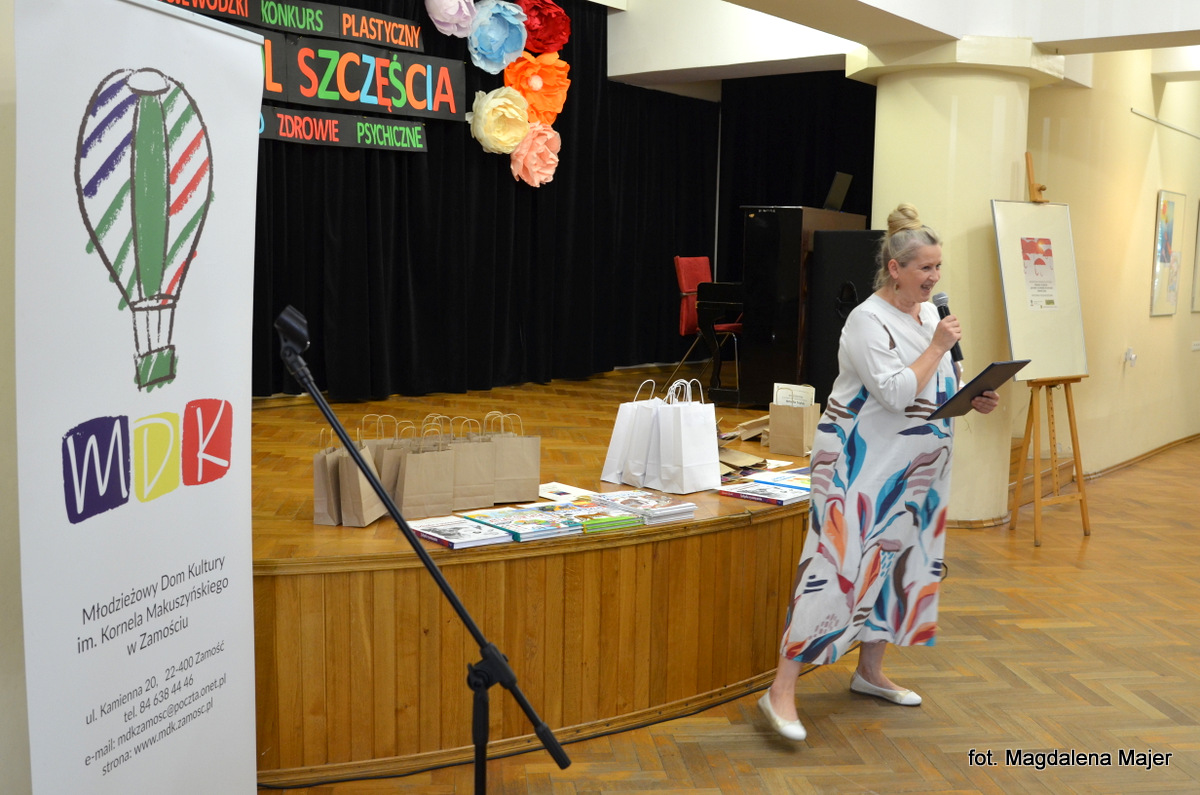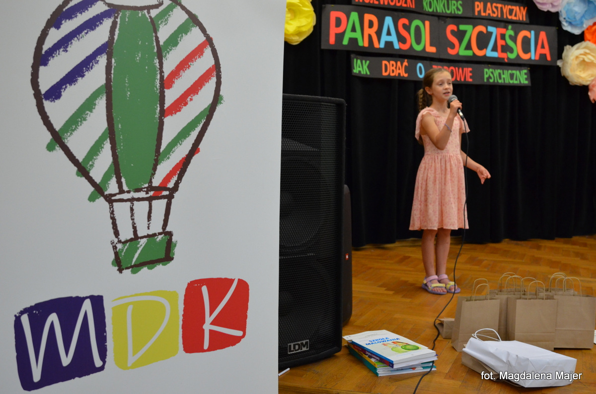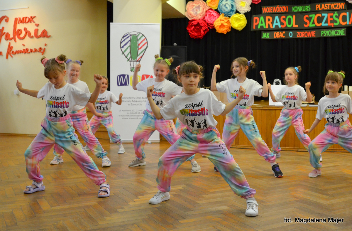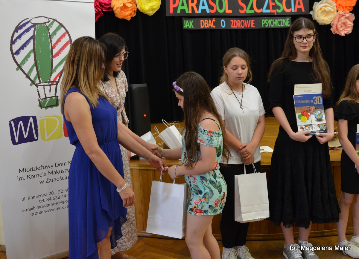W czwartkowe popołudnie w Galerii Sztuki MDK „Na Kamiennej” odbyło się otwarcie wystawy oraz podsumowanie  Wojewódzkiego Konkursu Plastycznego ”Parasol szczęścia – jak dbać o zdrowie psychiczne”, które wsparli Ośrodek Interwencji Kryzysowej w Zamościu, Poradnia Psychologiczno- Pedagogiczna Nr 1 w Zamościu oraz Rada Rodziców MDK Zamość.