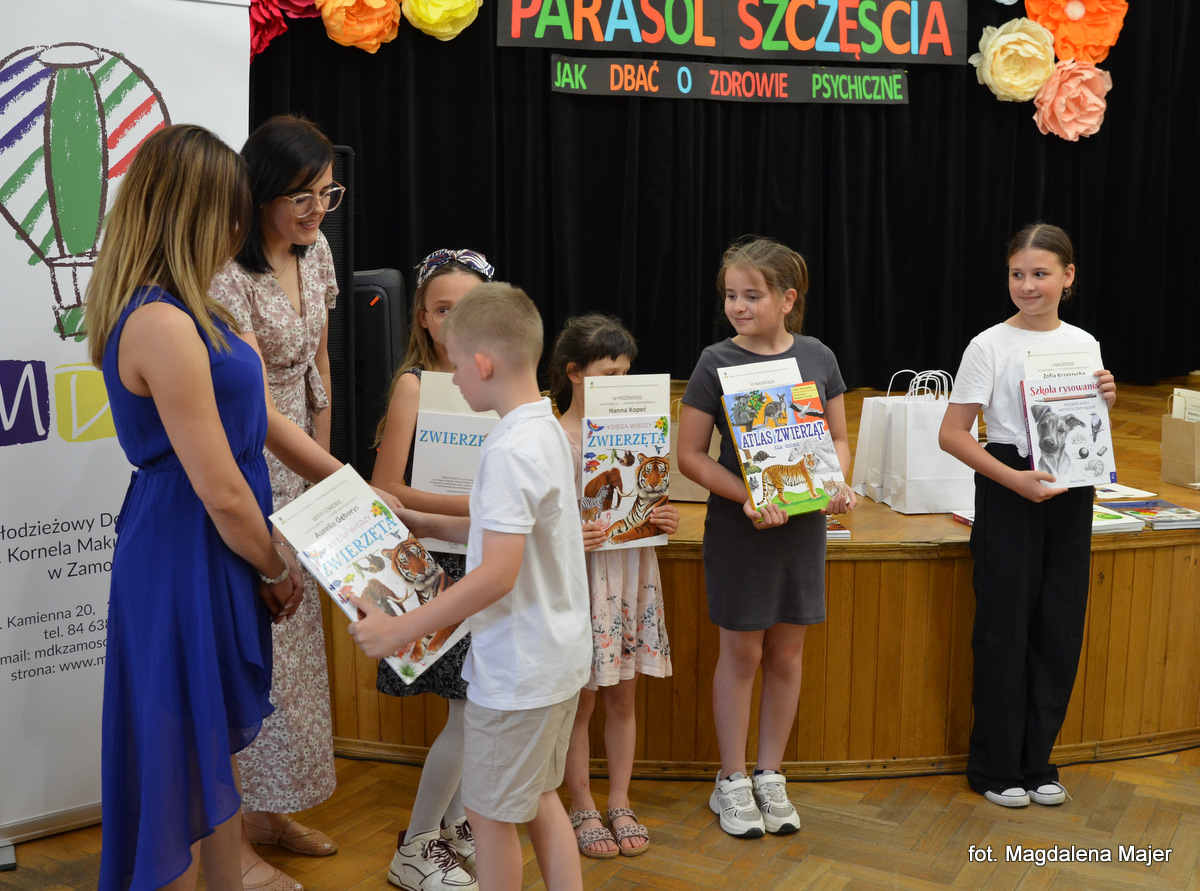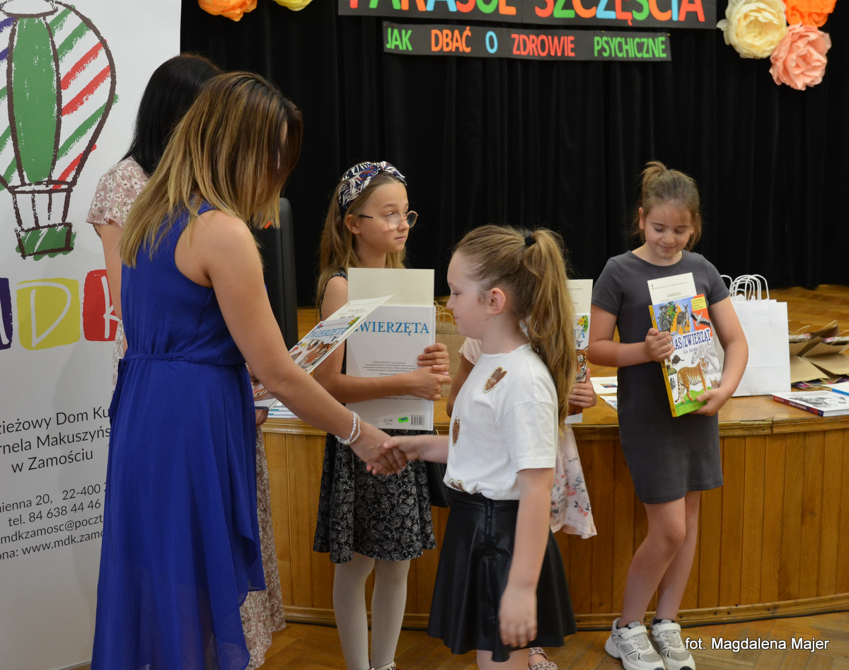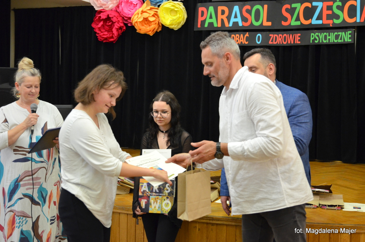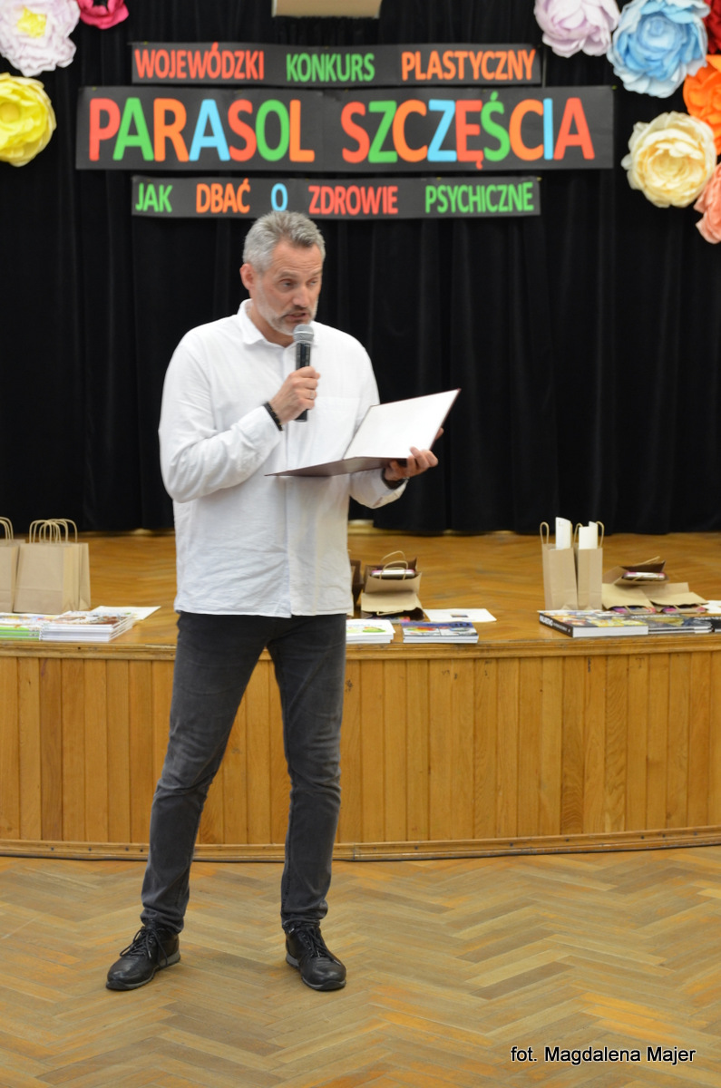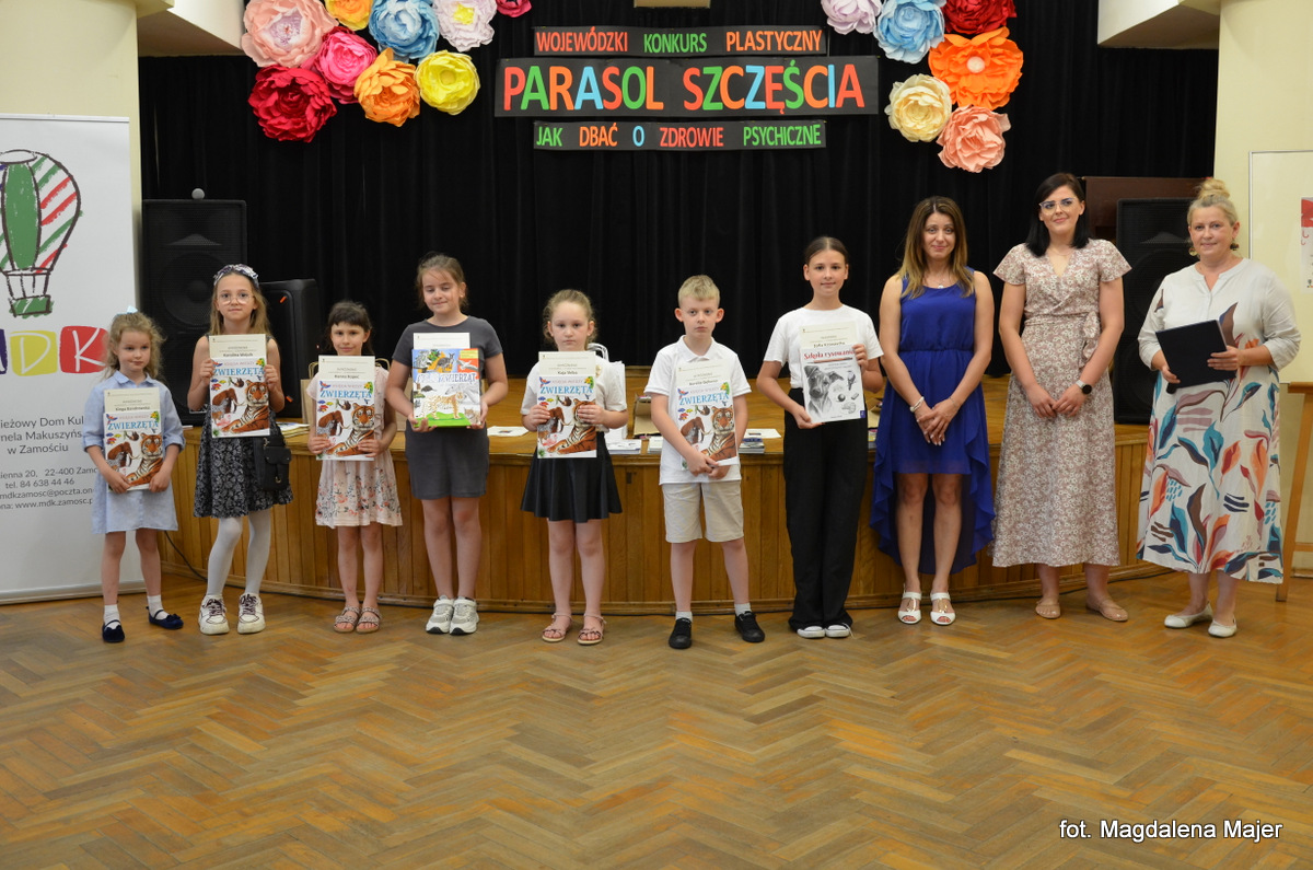 W czwartkowe popołudnie w Galerii Sztuki MDK „Na Kamiennej” odbyło się otwarcie wystawy oraz podsumowanie  Wojewódzkiego Konkursu Plastycznego ”Parasol szczęścia – jak dbać o zdrowie psychiczne”, które wsparli Ośrodek Interwencji Kryzysowej w Zamościu, Poradnia Psychologiczno- Pedagogiczna Nr 1 w Zamościu oraz Rada Rodziców MDK Zamość.