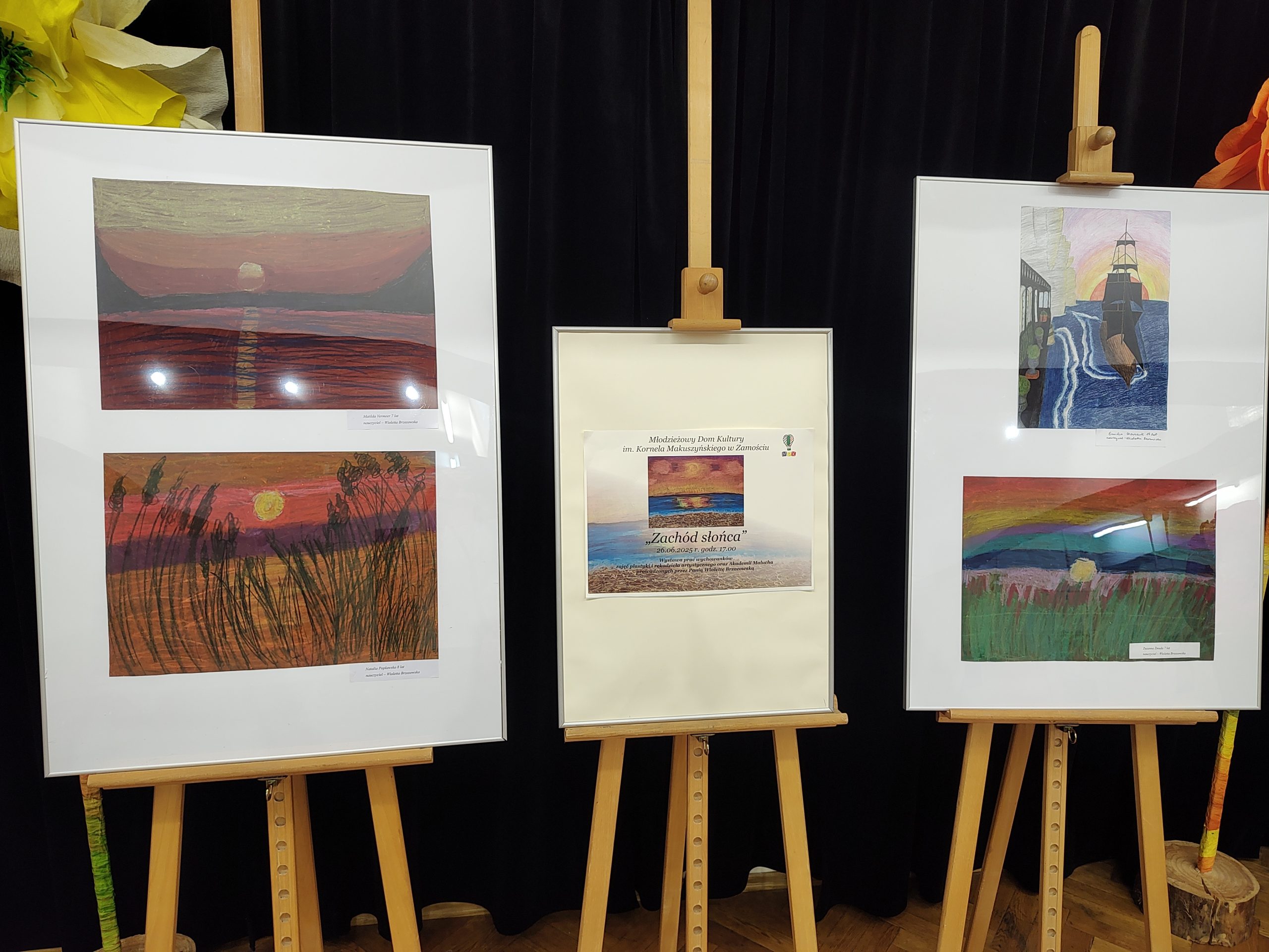 Dnia 26 czerwca 2025 r. w Galerii Sztuki Dziecka na „Kamiennej” w Młodzieżowym Domu Kultury, obyło się otwarcie wystawy prac plastycznych pt. „Zachód słońca”. Autorami prac są wychowankowie zajęć plastyki i rękodzieła artystycznego gr. I, II, III, IV oraz Akademii Malucha prowadzonych przez Panią Wiolettę Brzozowską.