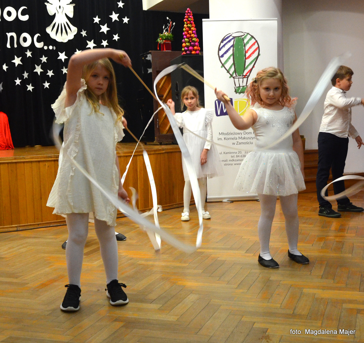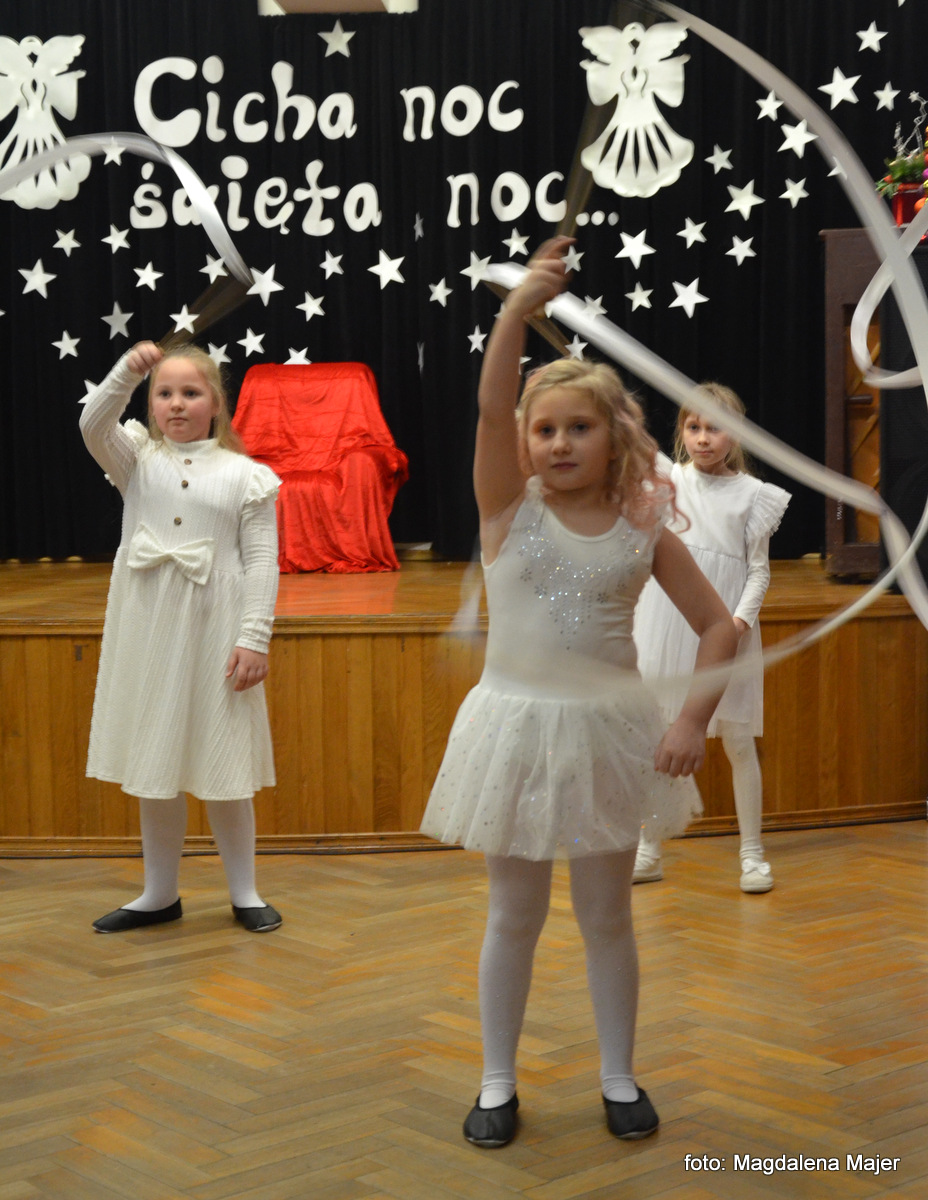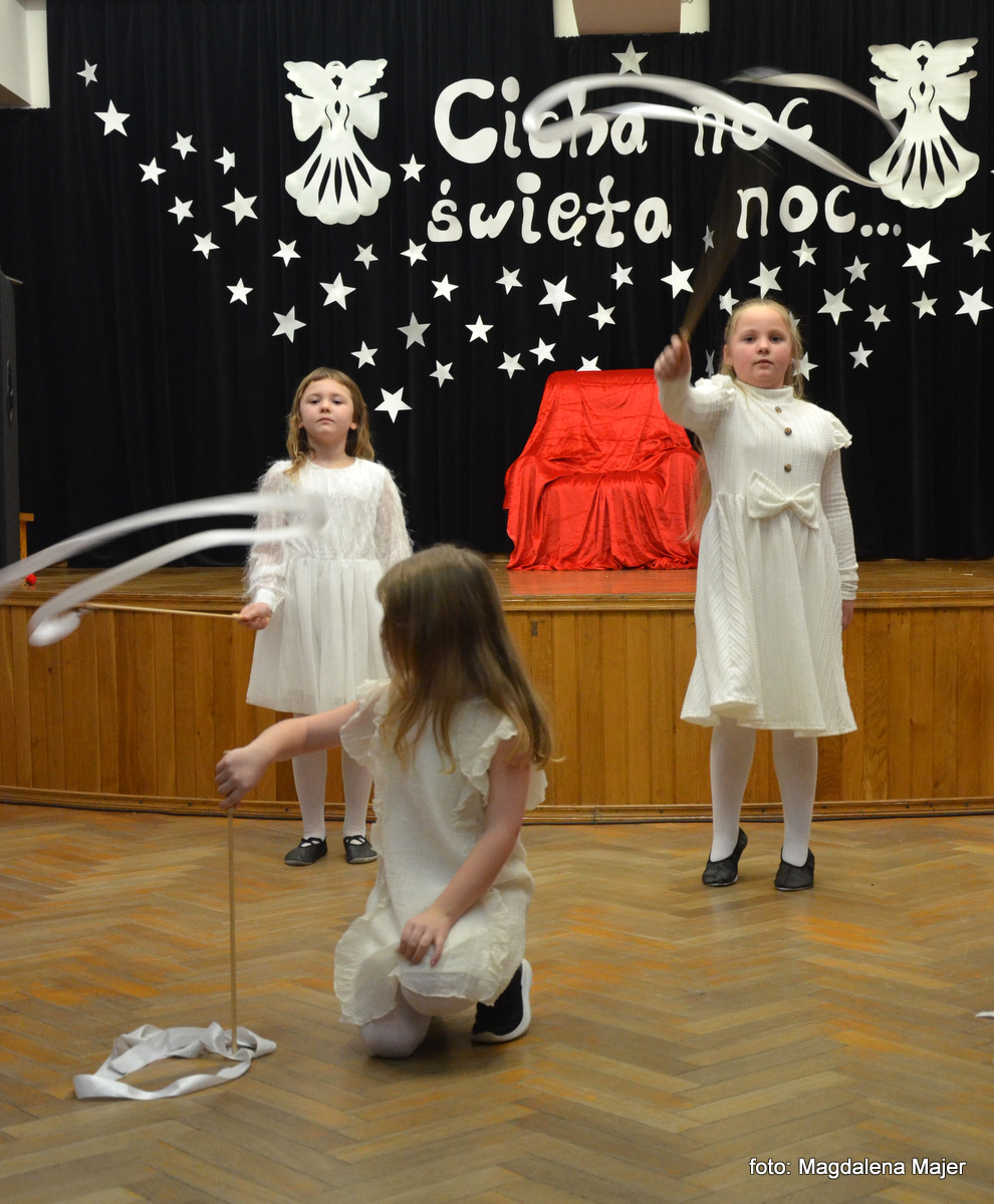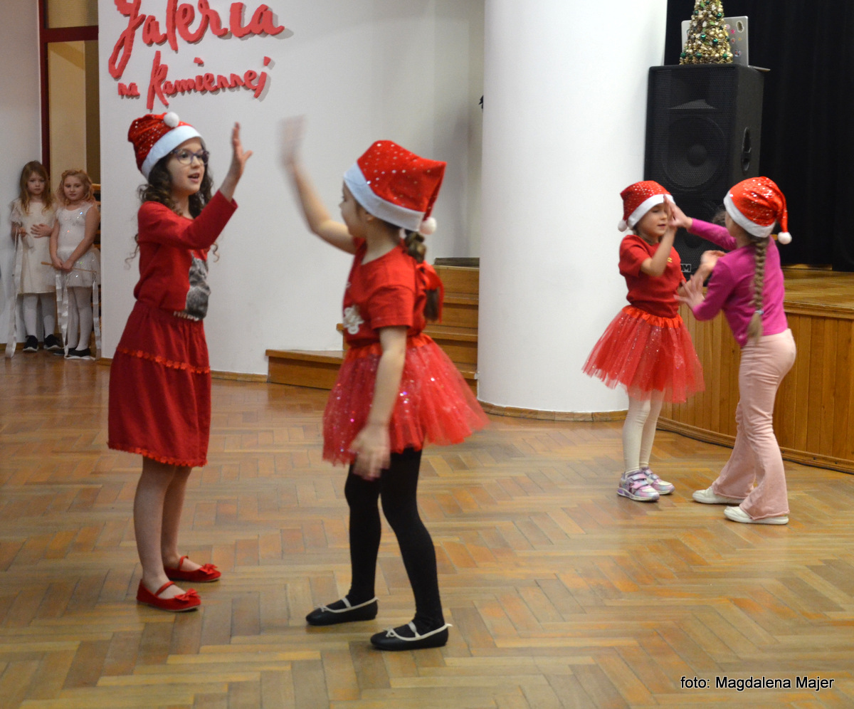 Na scenie zaprezentowali się przygotowani przez panią Kamilę Wagę młodzi artyści, którzy udowodnili, że talent i świąteczny duch idą w parze. Grupa rytmiczna porwała publiczność energią i świetnym wyczuciem rytmu w choreografii