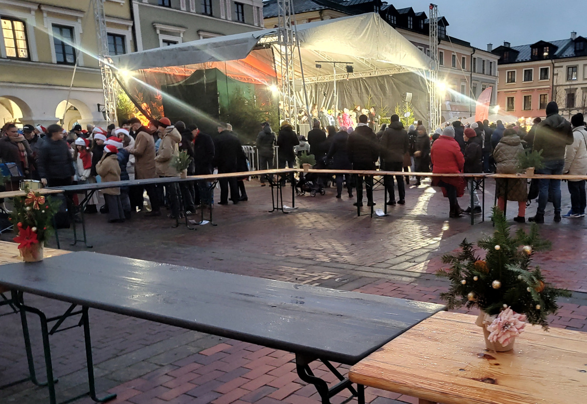 Tegoroczna XVIII Wigilia Mieszkańców Zamościa pod Honorowym Patronatem Księdza Biskupa Mariana Rojka oraz Prezydenta Zamościa Rafała Zwolaka, zatytułowana „Bądźmy wszyscy razem” odbyła się 21 grudnia 2025 roku na Rynku Wielkim.