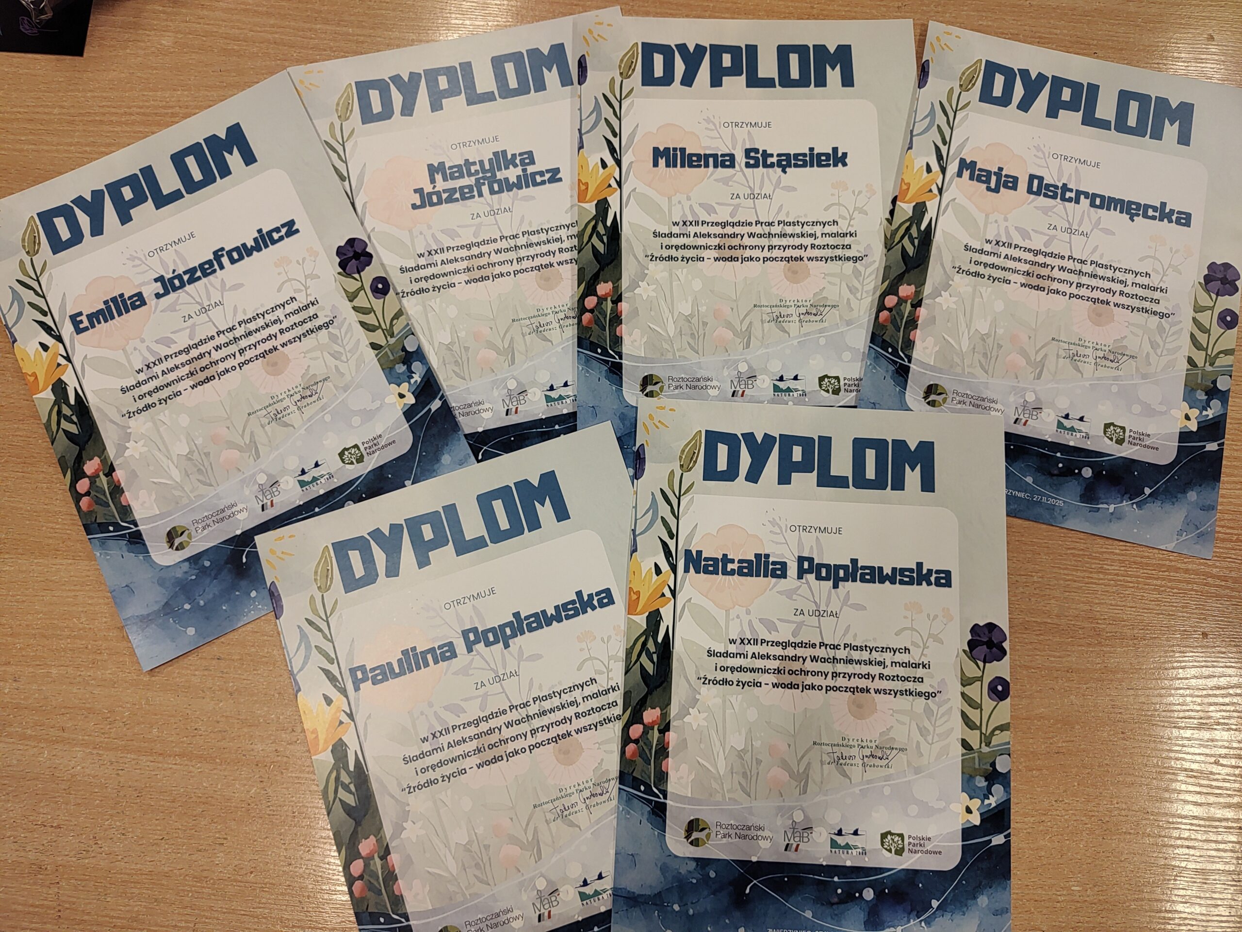 W Roztoczańskim Parku Narodowym podsumowano XXII Przegląd Prac Plastycznych „Śladami Aleksandry Wachniewskiej, malarki i orędowniczki ochrony przyrody Roztocza”. W przeglądzie prac plastycznych wzięło udział 1159 osoby z 42 placówek oświatowych, wśród uczestników znaleźli się również nasi wychowankowie. Tematem przewodnim przeglądu było „Źródło życia – woda jako początek wszystkiego”. Wychowanków przygotowała pani Wioletta Brzozowska z pracowni plastyki i rękodzieła artystycznego.