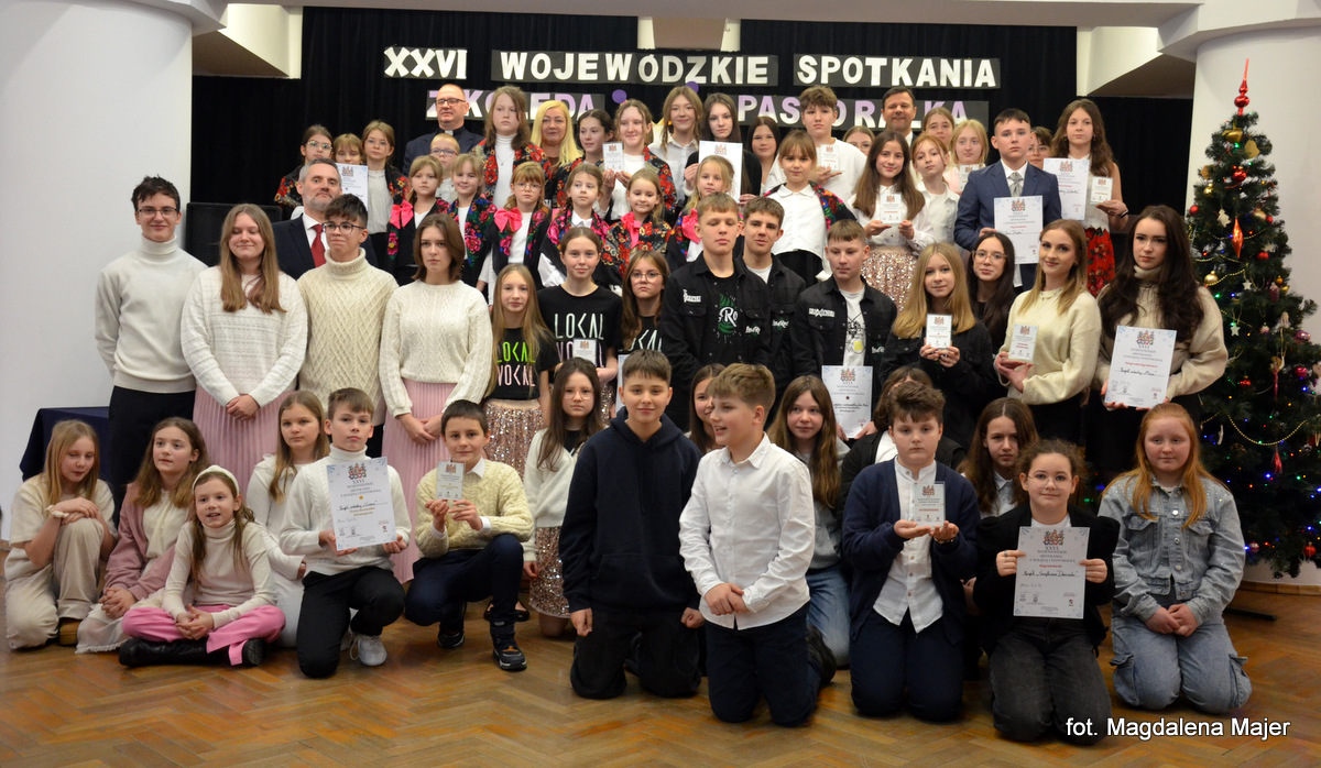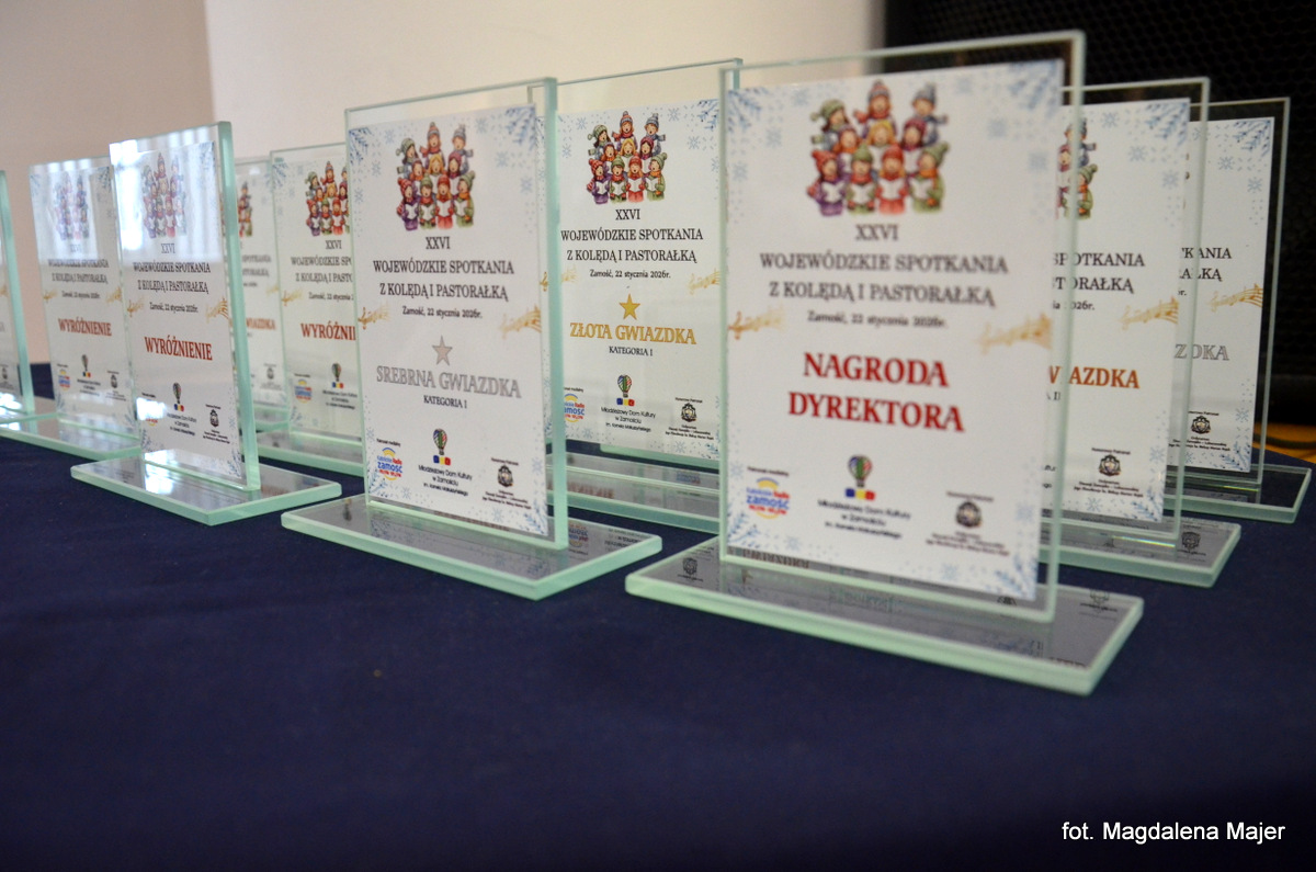 W dniu 22 stycznia 2026r. w Młodzieżowym Dom Kultury im. Kornela Makuszyńskiego w Zamościu odbyły się XXVI Wojewódzkie Spotkania z Kolędą i Pastorałką. Na scenie MDK zaprezentowało się 24 zespoły dziecięce i młodzieżowe o łącznej liczbie 270 osób. Komisja konkursowa w składzie p. Magdalena Stopa, p. Joanna Przekocińska i ksiądz Sławomir Korona po wysłuchaniu wszystkich zespołów postanowiła przyznać następujące nagrody i wyróżnienia.