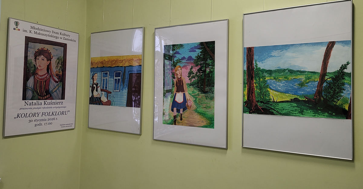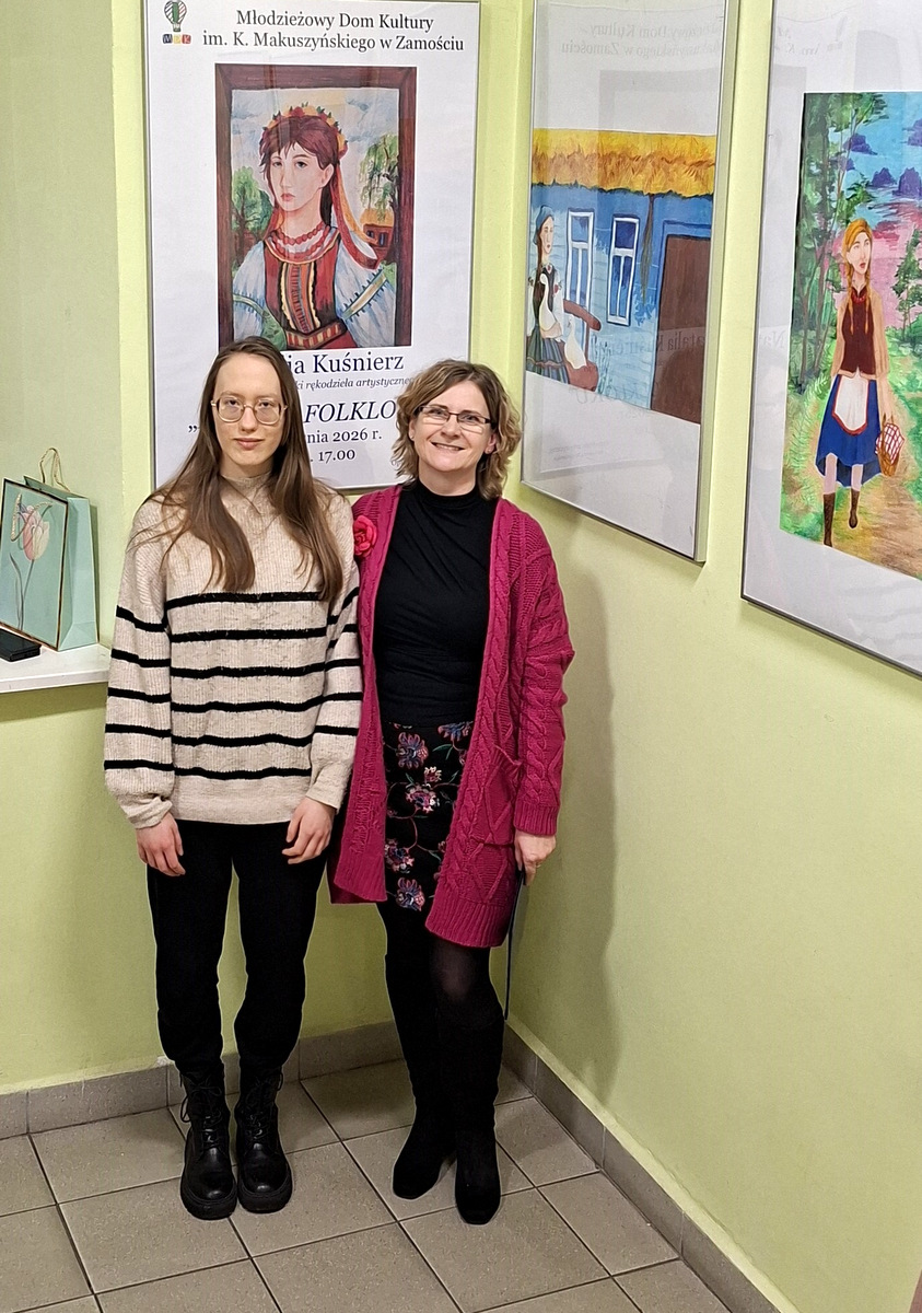 W dniu 30 stycznia w Młodzieżowym Domu Kultury im. Kornela Makuszyńskiego w Zamościu odbyło się uroczyste otwarcie wystawy Natalii Kuśnierz pt. „Kolory folkloru”. Na co dzień wychowanka pracowni plastyki i rękodzieła artystycznego, pracująca pod kierunkiem pani Wioletty Brzozowskiej. Wystawa była zwieńczeniem dokonań twórczych wychowanki oraz wspaniałym miejscem do spotkania i podzielenia się swoją twórczością artystyczną ze społecznością placówki.