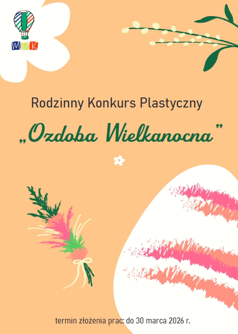 Rada Rodziców i Samorząd Wychowanków zapraszają wszystkich wychowanków placówki do udziału w rodzinnym konkursie plastycznym “Ozdoba wielkanocna”. Celem przedsięwzięcia jest integracja międzypokoleniowa, zacieśnianie więzi rodzinnych, przekazywanie tradycji i obyczajów świątecznych przez starsze pokolenia – pokoleniom najmłodszym.