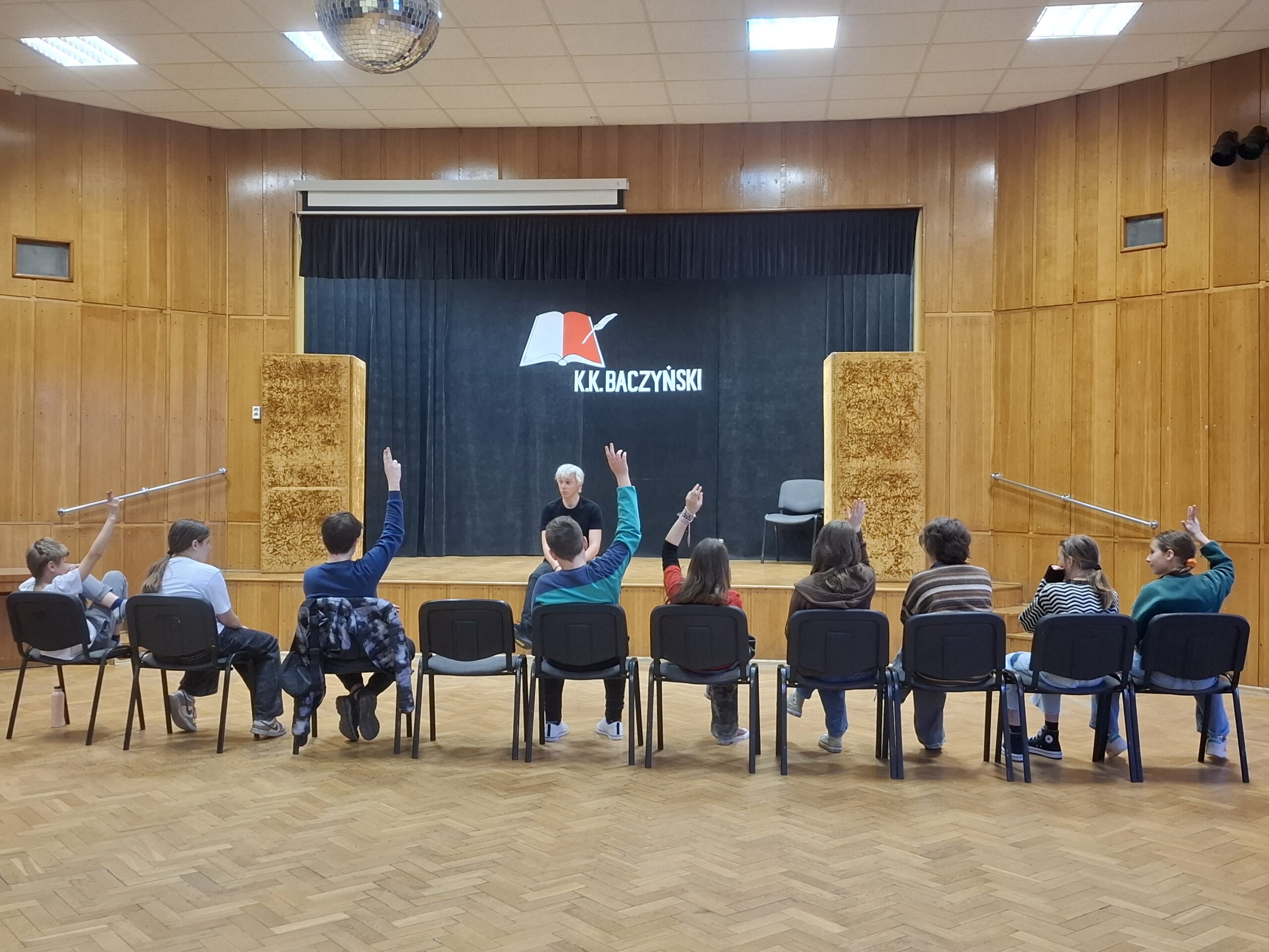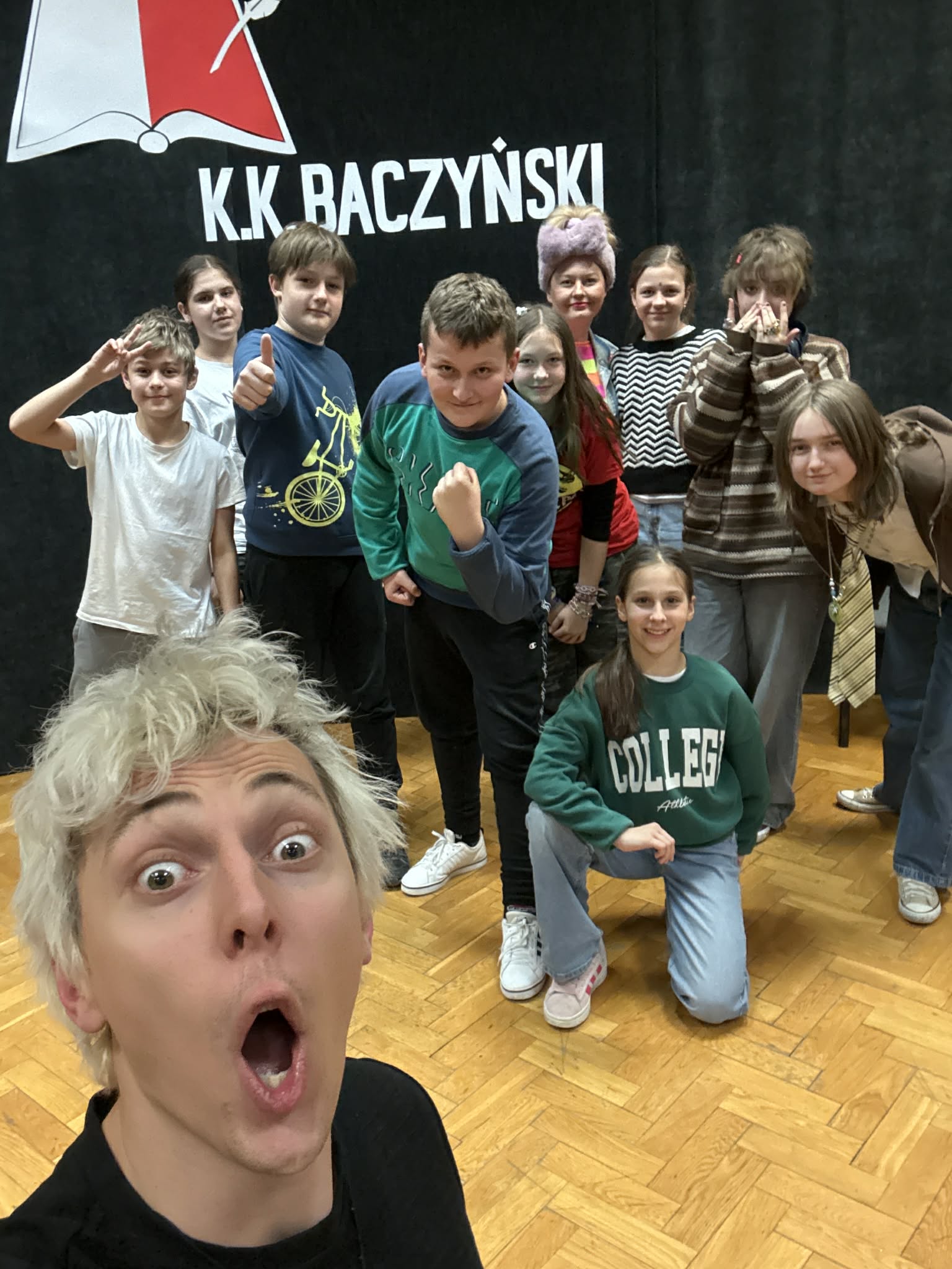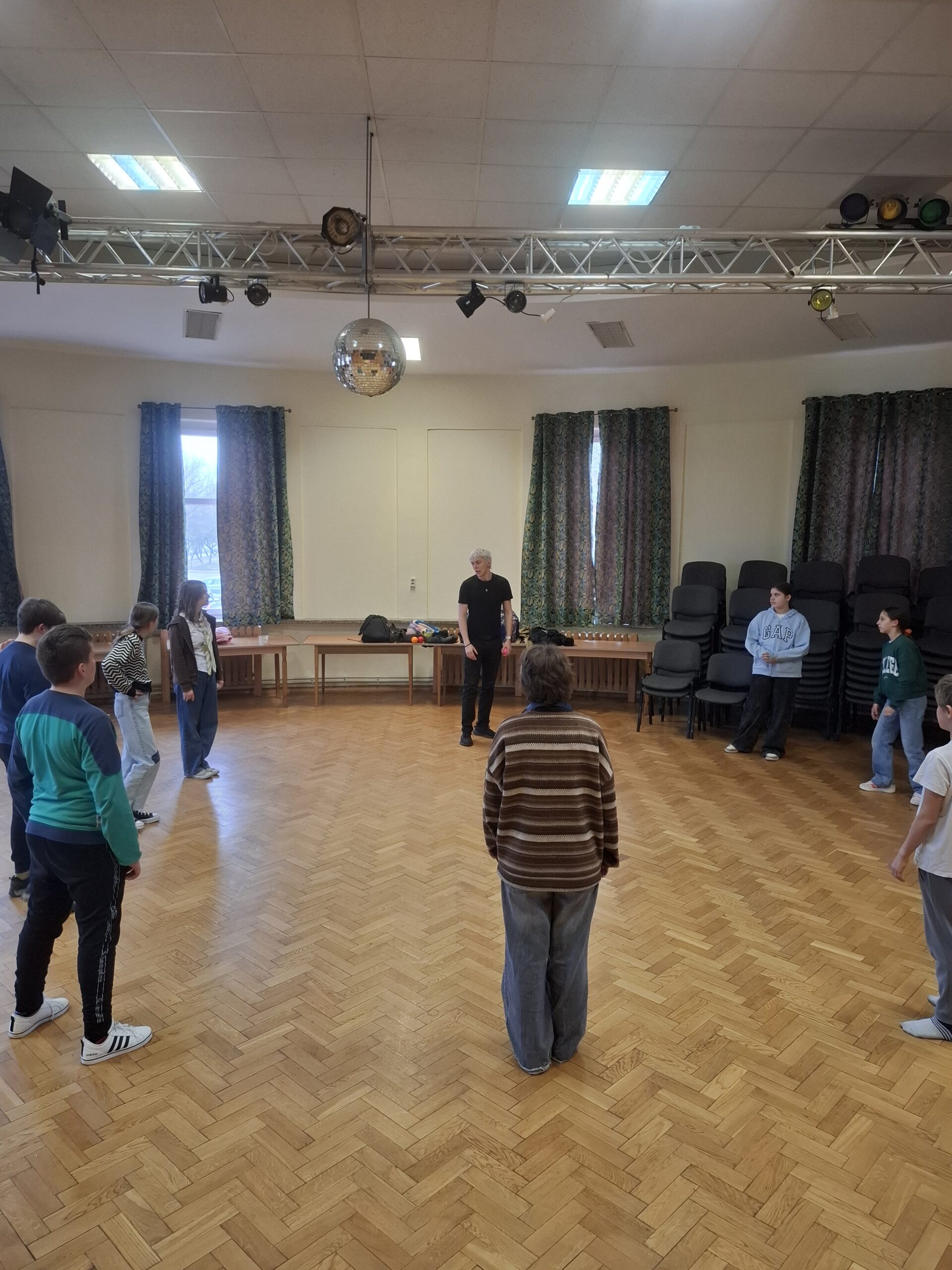 Warsztaty teatralne poprowadzone dnia 19 marca 2026r. przez pana Marcina Lipskiego – aktora, performera, ogniomistrza i improwizatora a na co dzień założyciela grupy „TOTO IMPRO” – były wyjątkowym wydarzeniem dla młodzieży działającej w grupach teatralnych przy Młodzieżowym Domu Kultury w Zamościu.