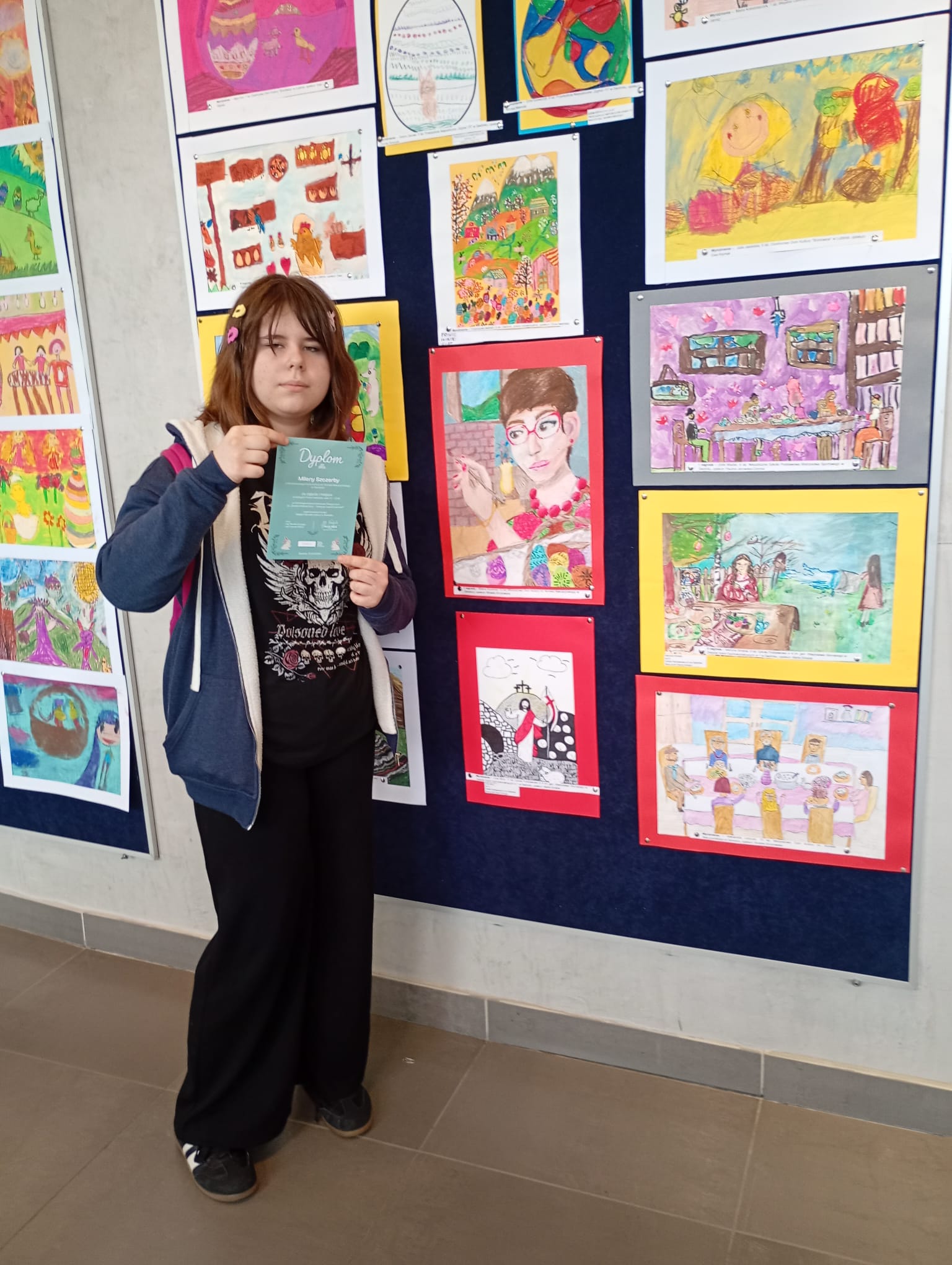 Nasze wychowanki Milena i Aleksandra wraz z nauczycielem panią Wiolettą Brzozowską z pracowni plastyki i rękodzieła artystycznego reprezentowały naszą placówkę podczas uroczystości. I nagrodę w kategorii malarskiej otrzymała Milena Szczerba, natomiast wyróżnienia przyznano dla Aleksandry Leńczuk oraz Maji Ostromęckiej.